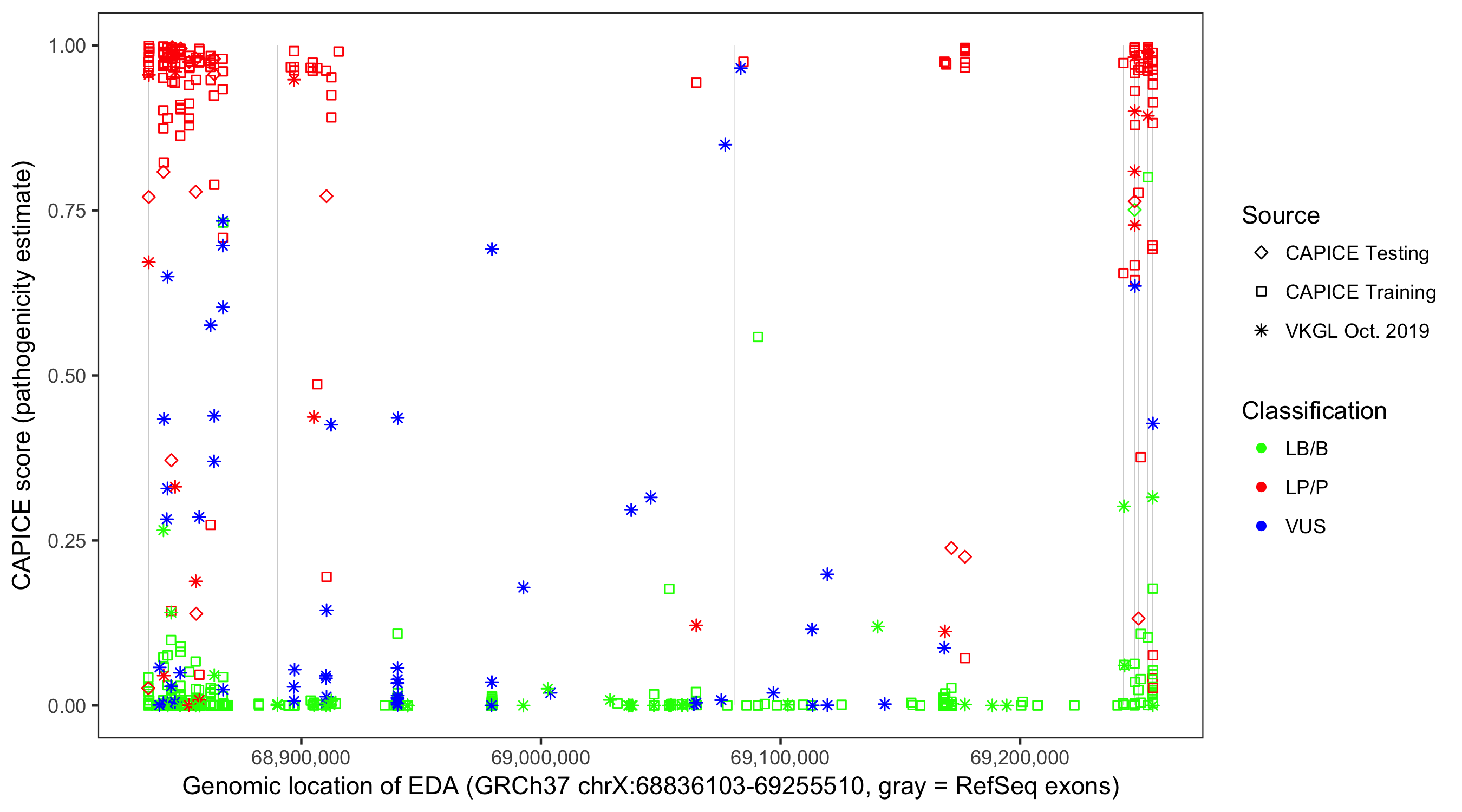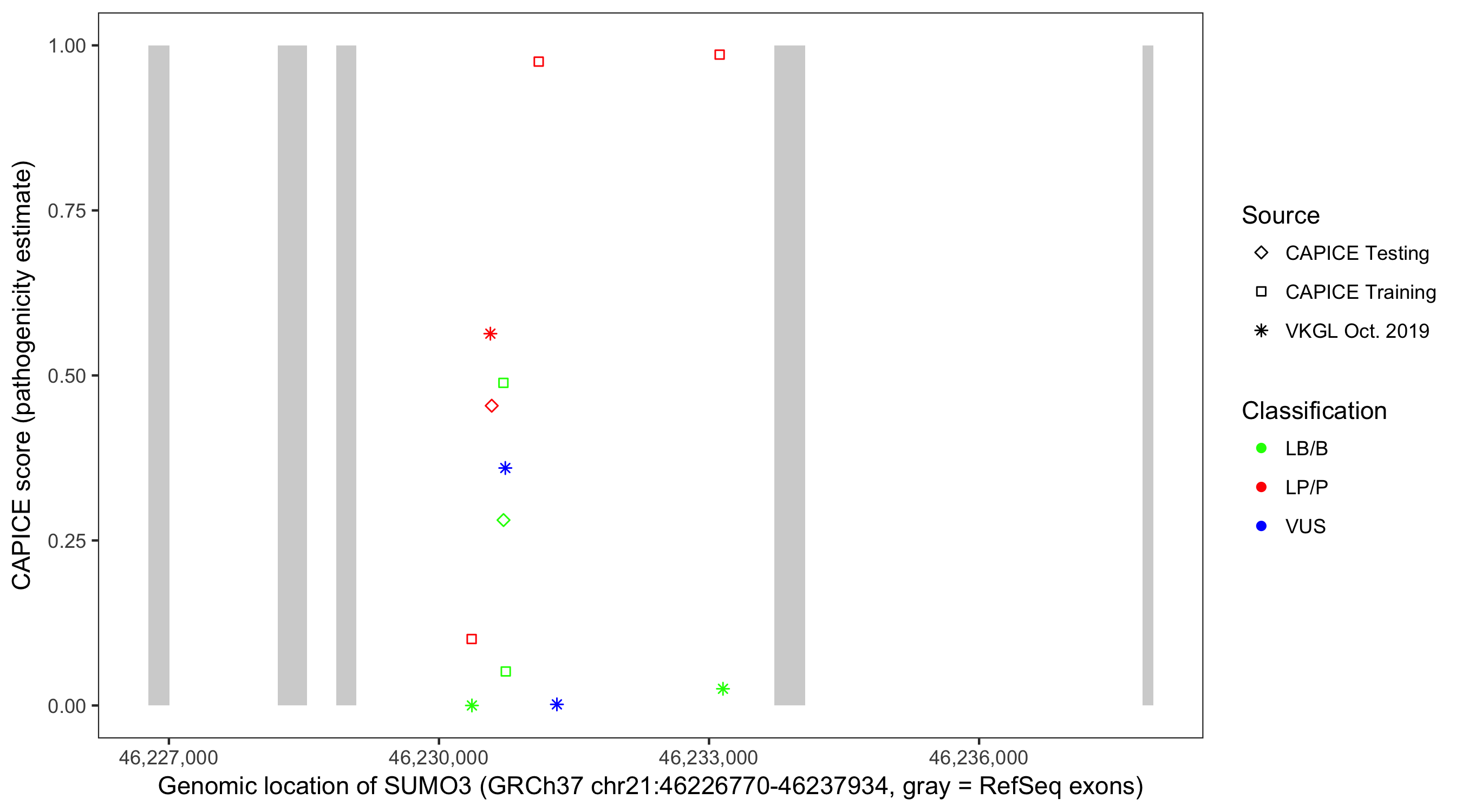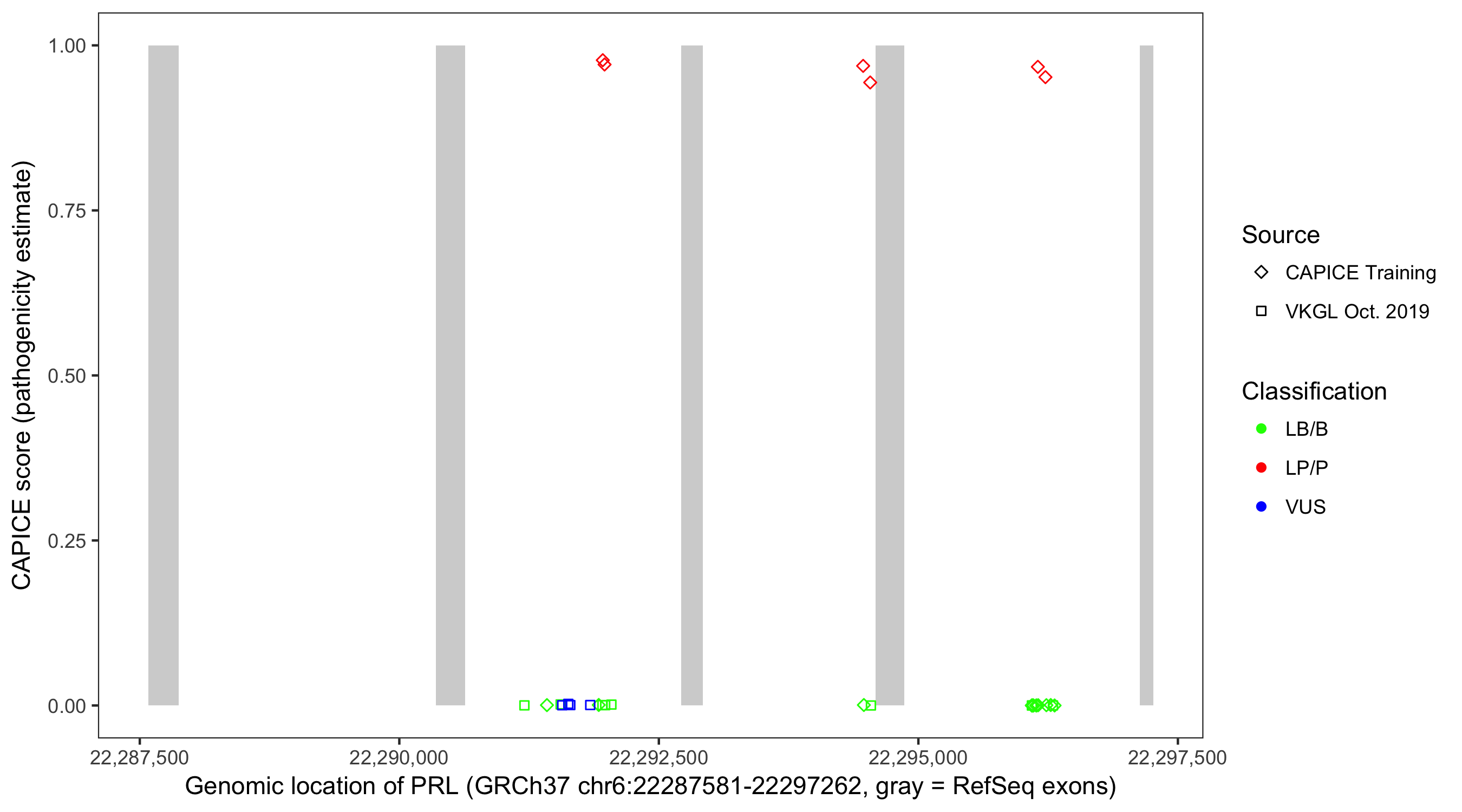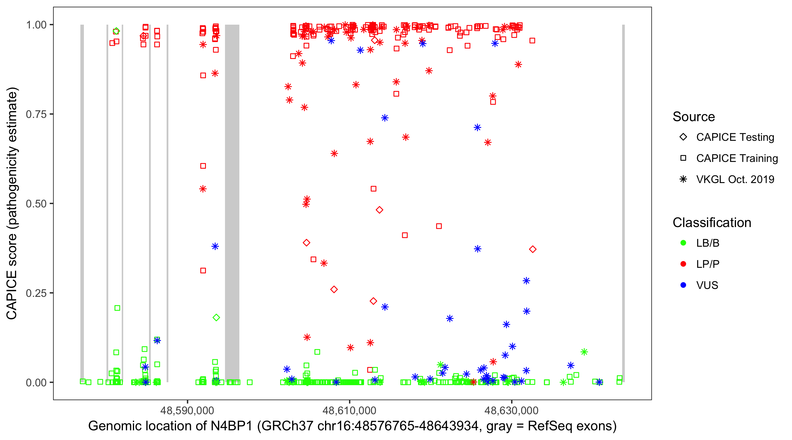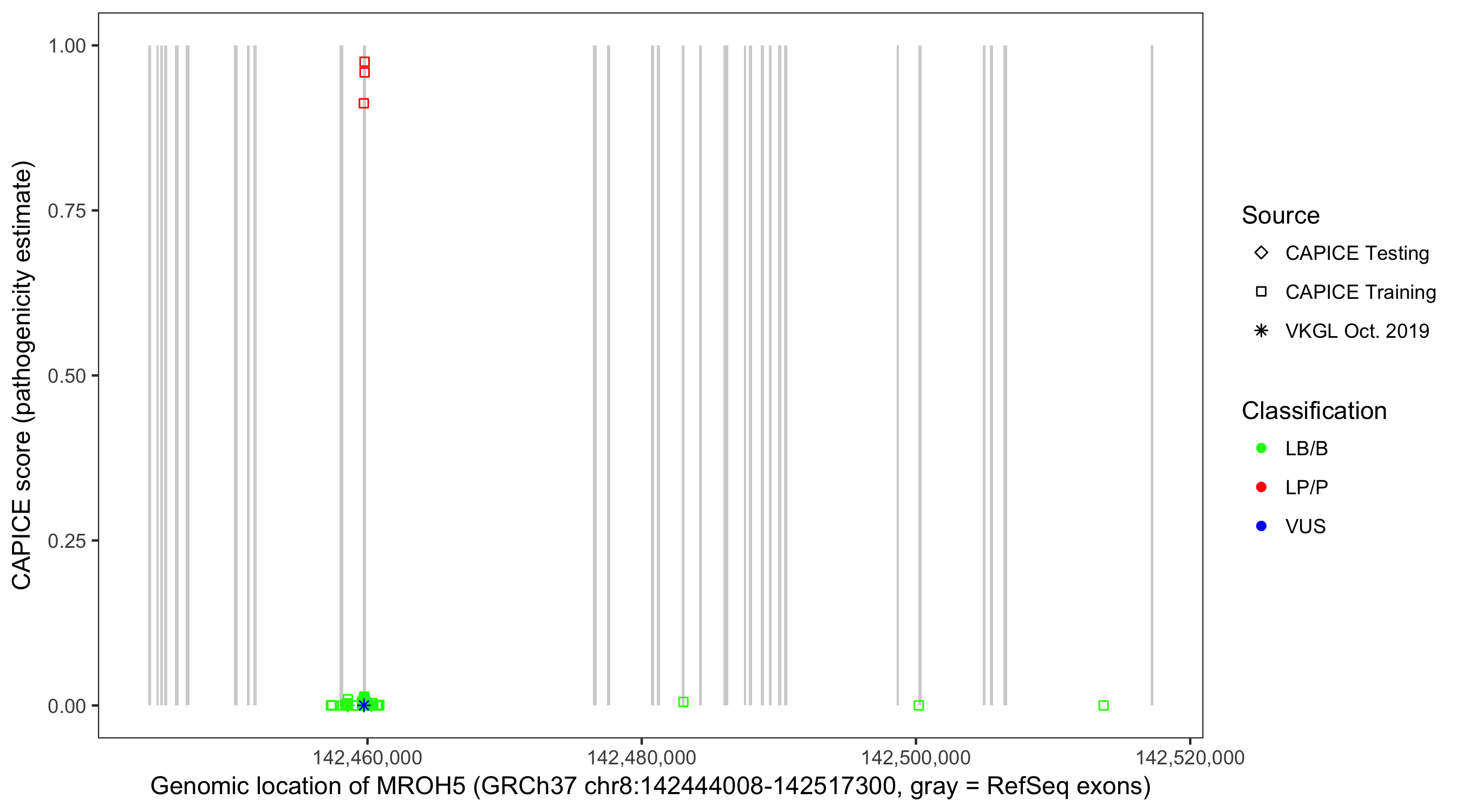 Shown are CAPICE train/test variants plus VKGL Oct 2019.