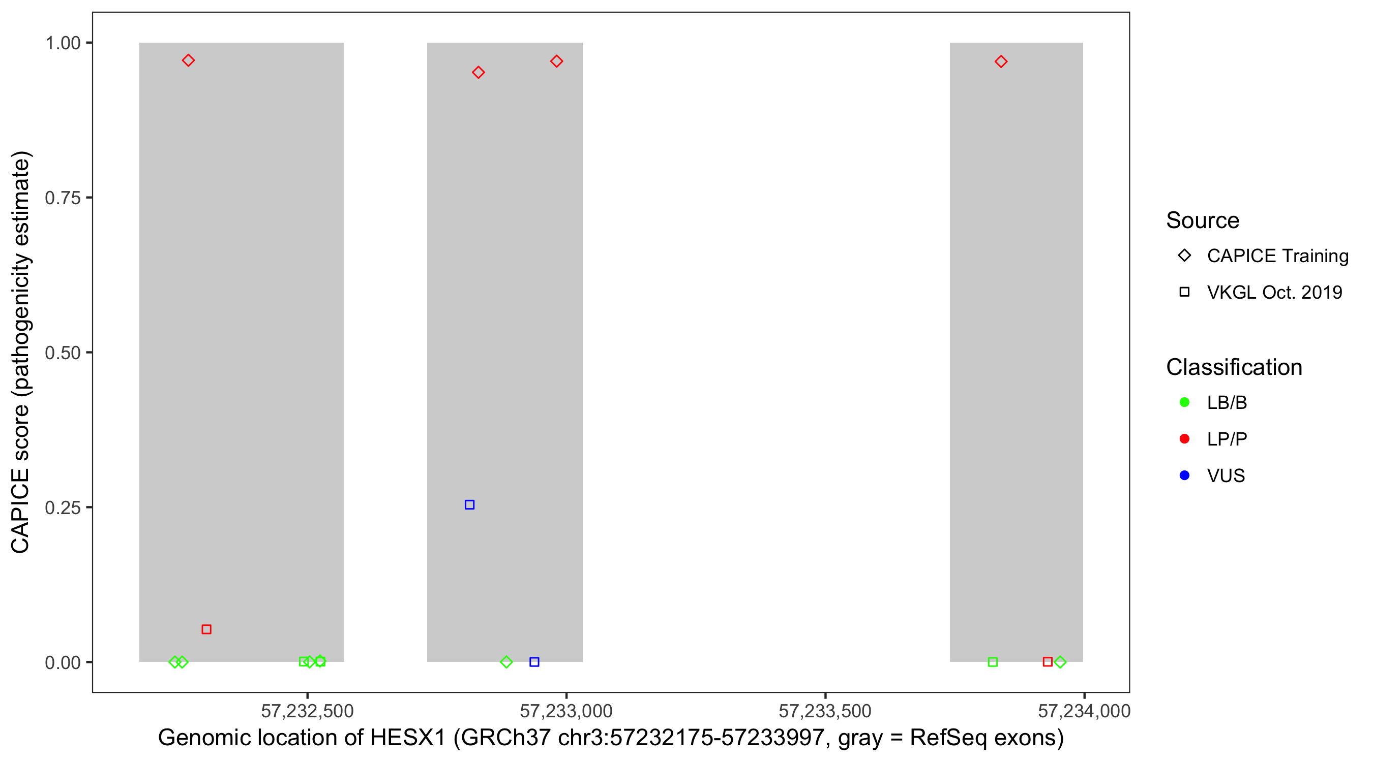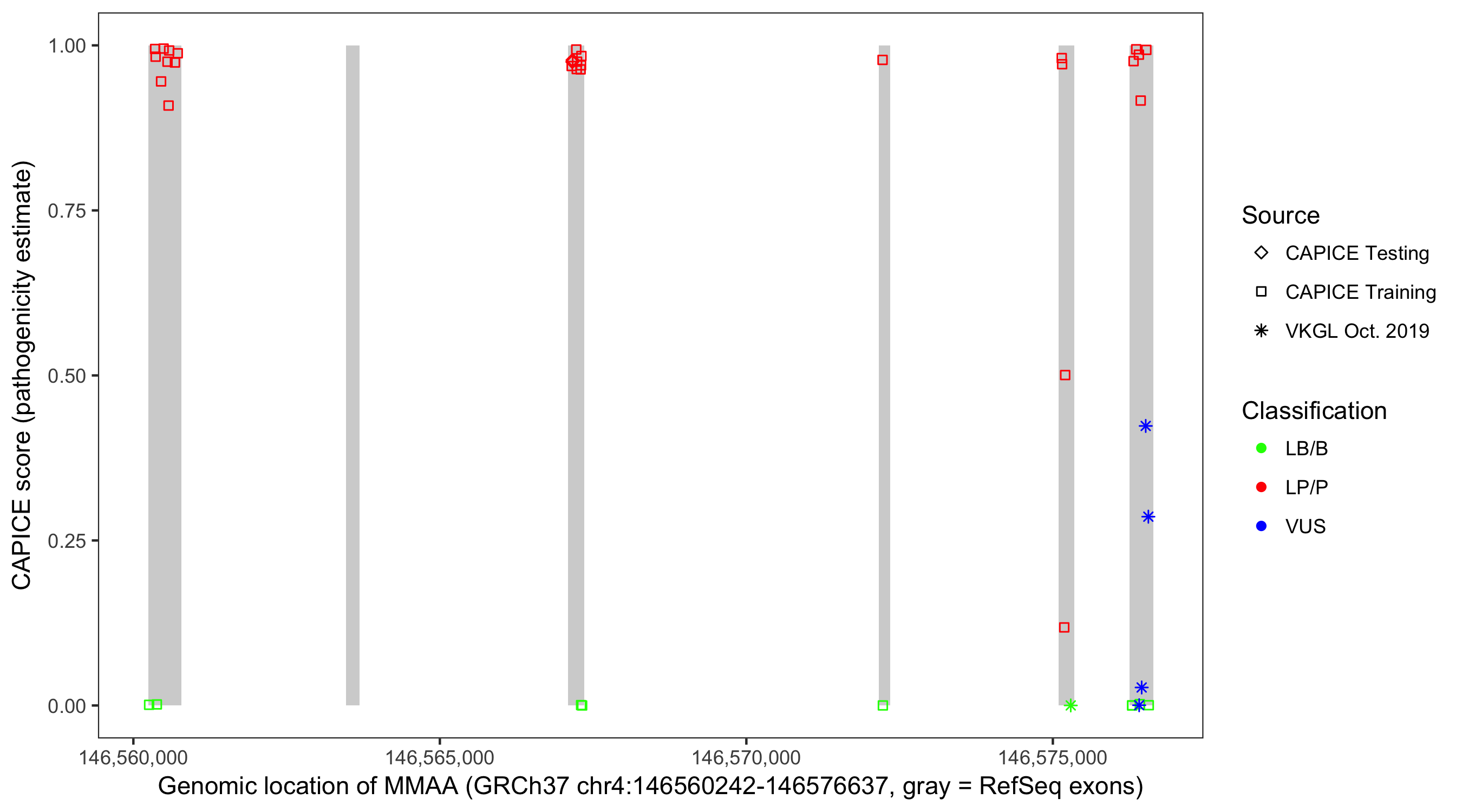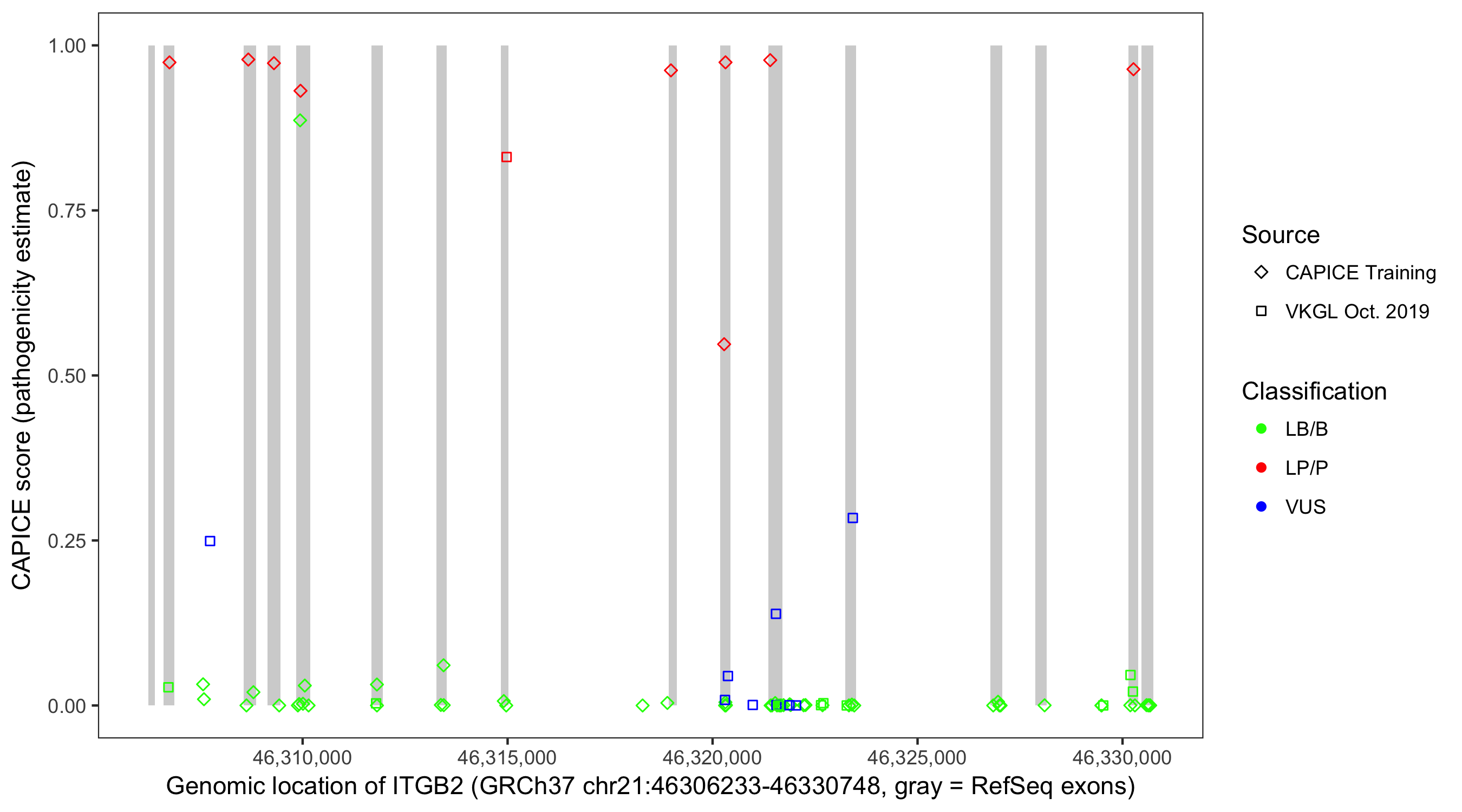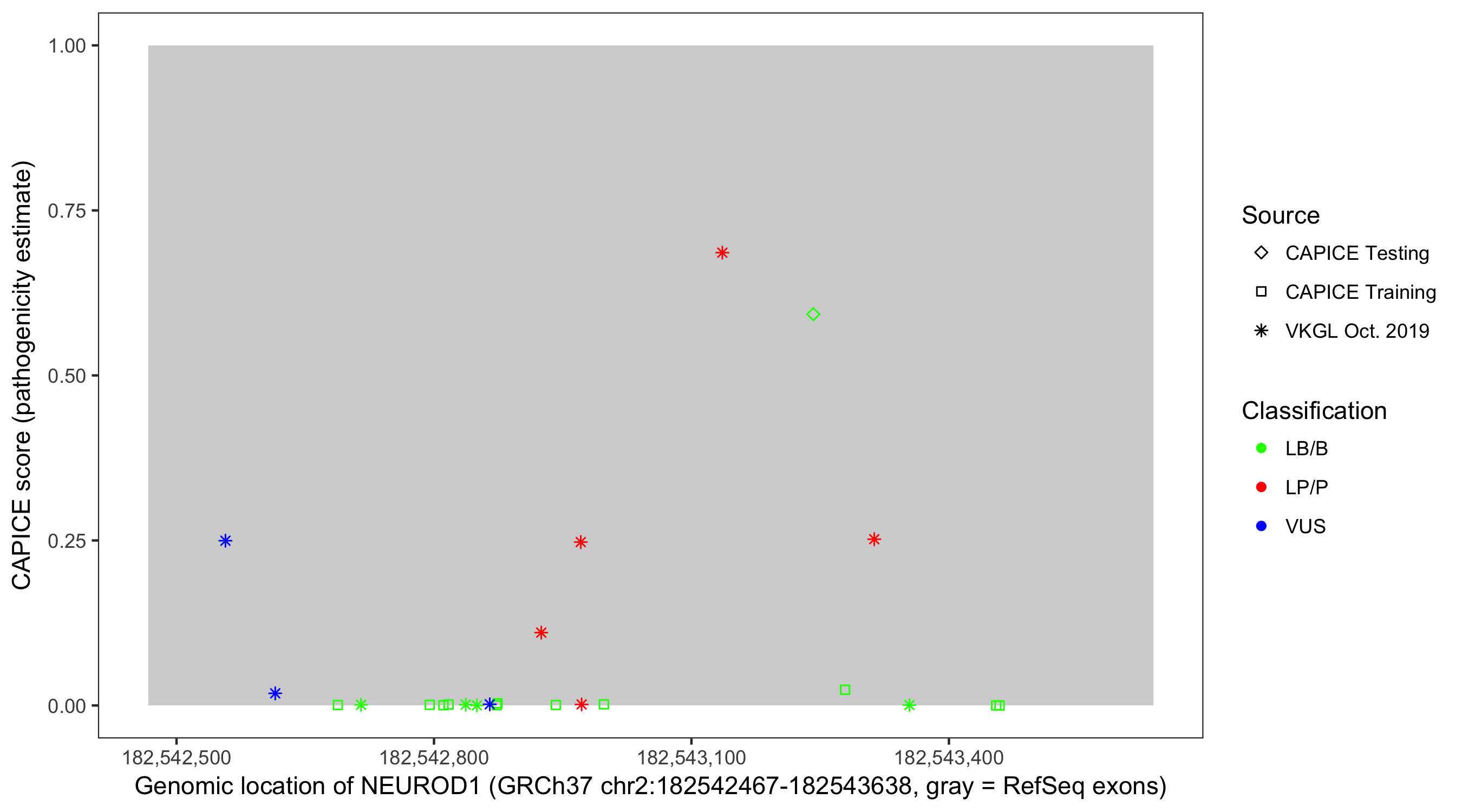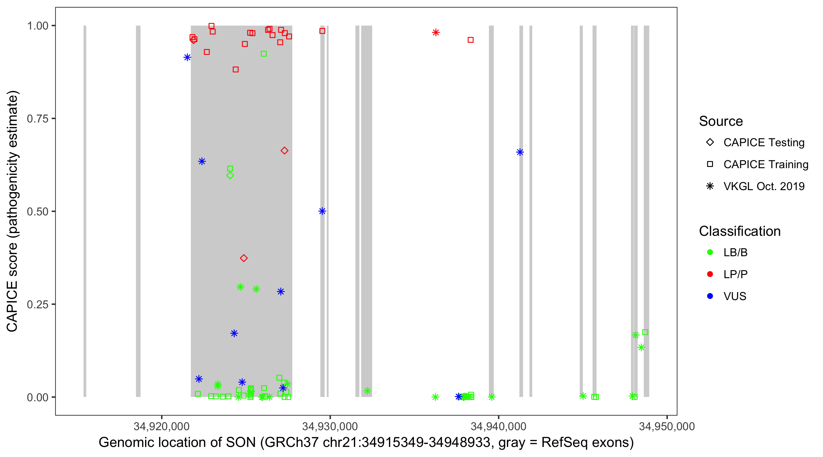 Shown are CAPICE train/test variants plus VKGL Oct 2019.