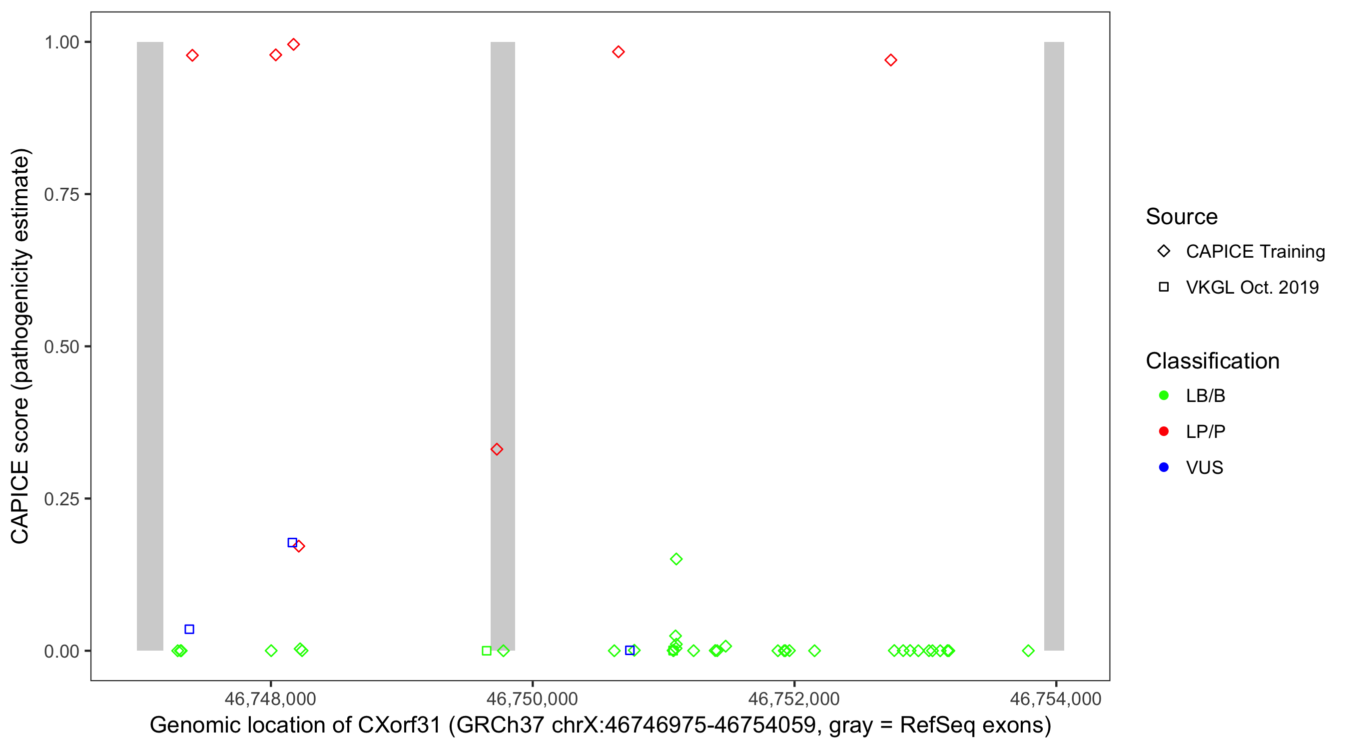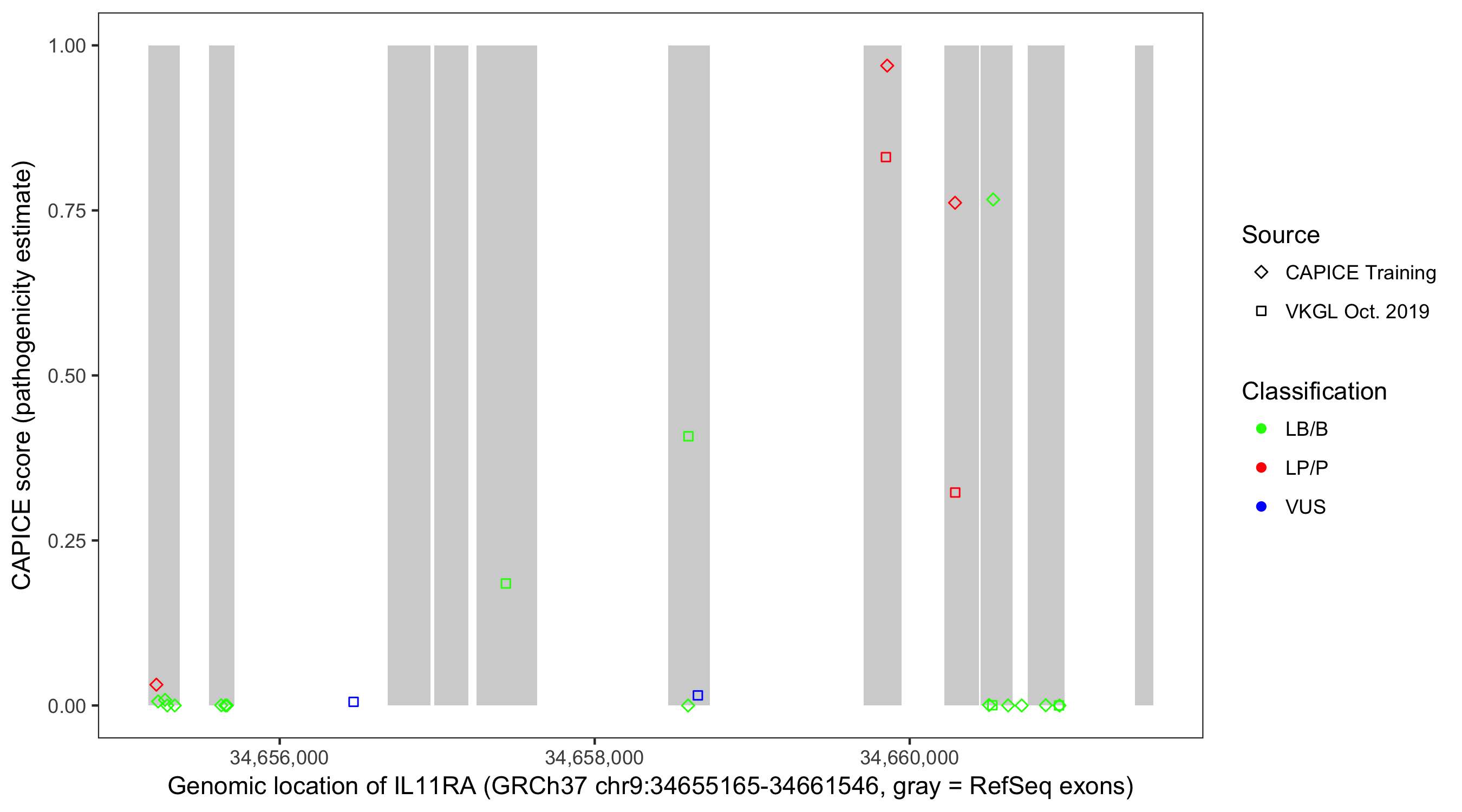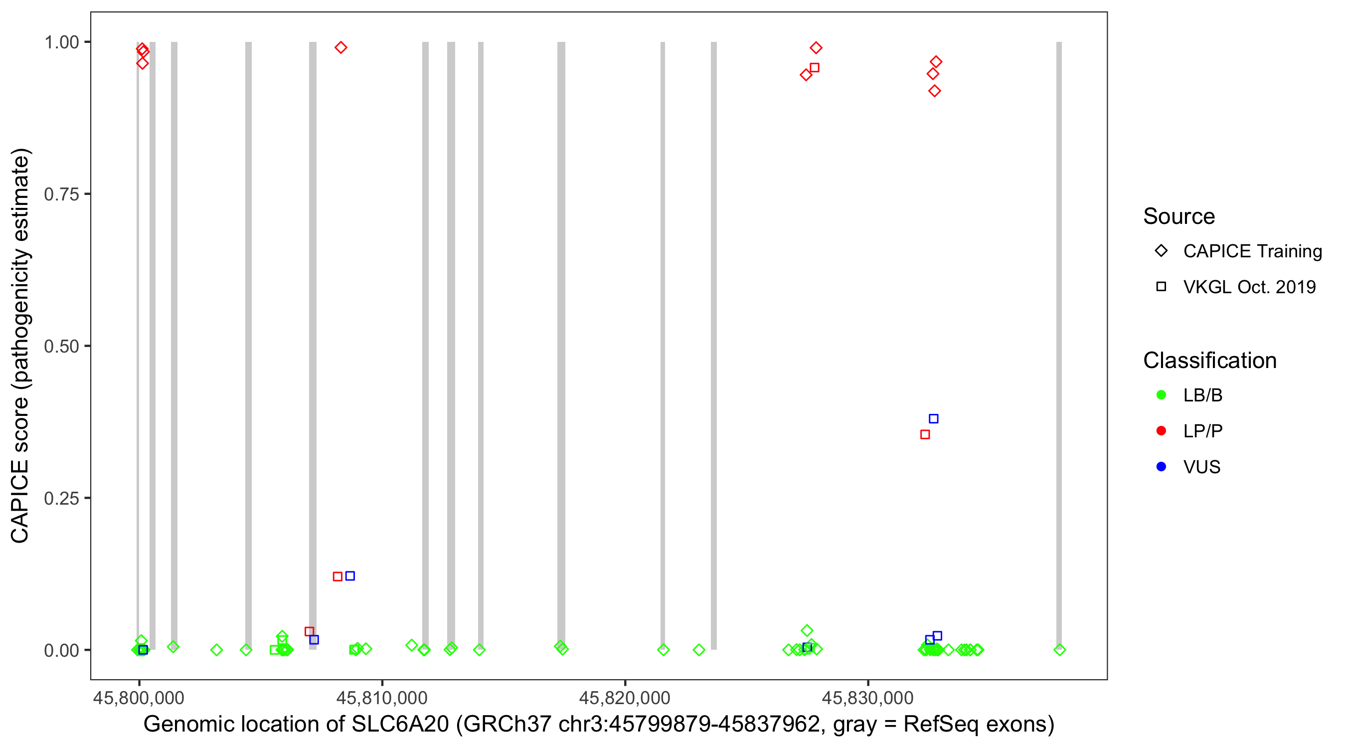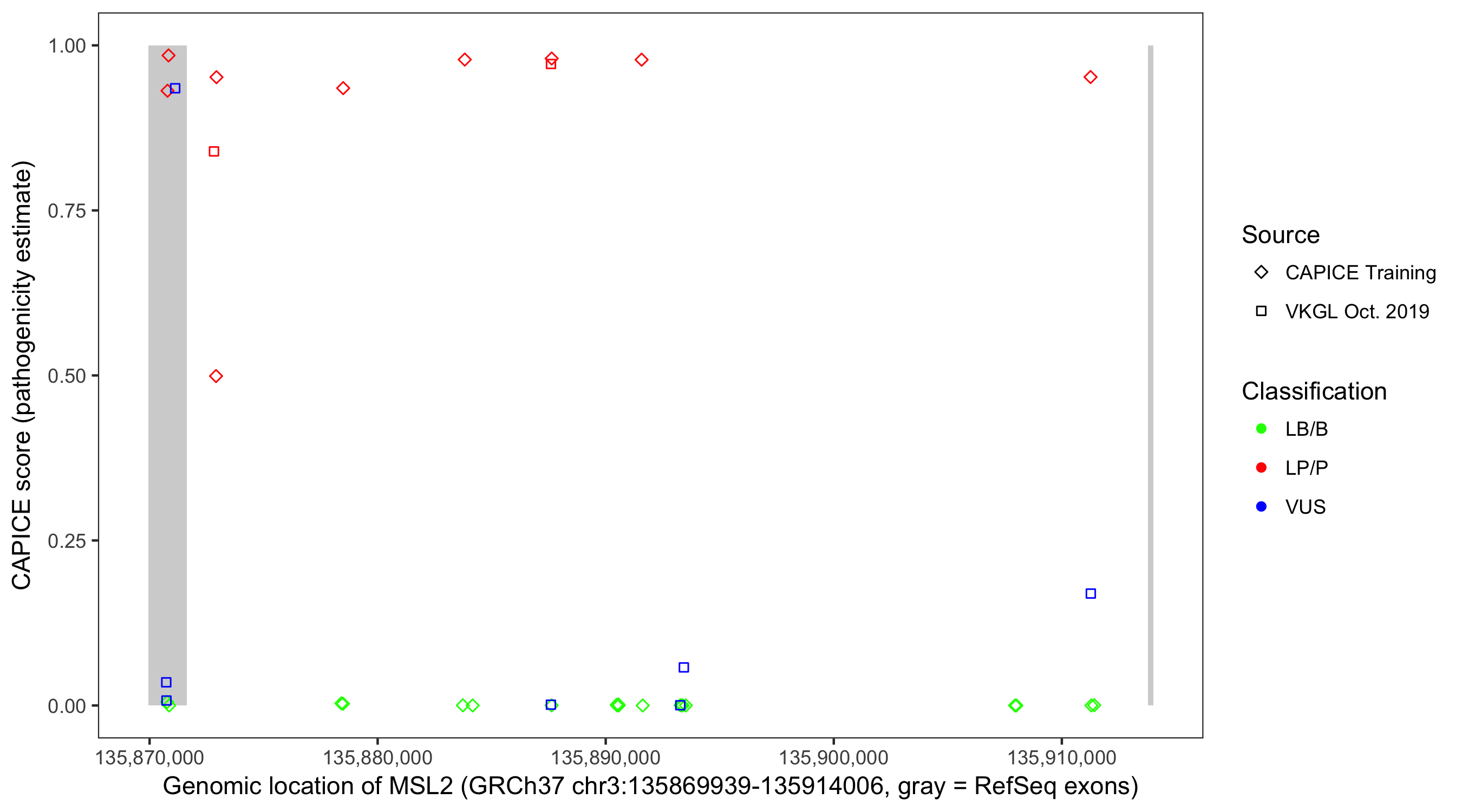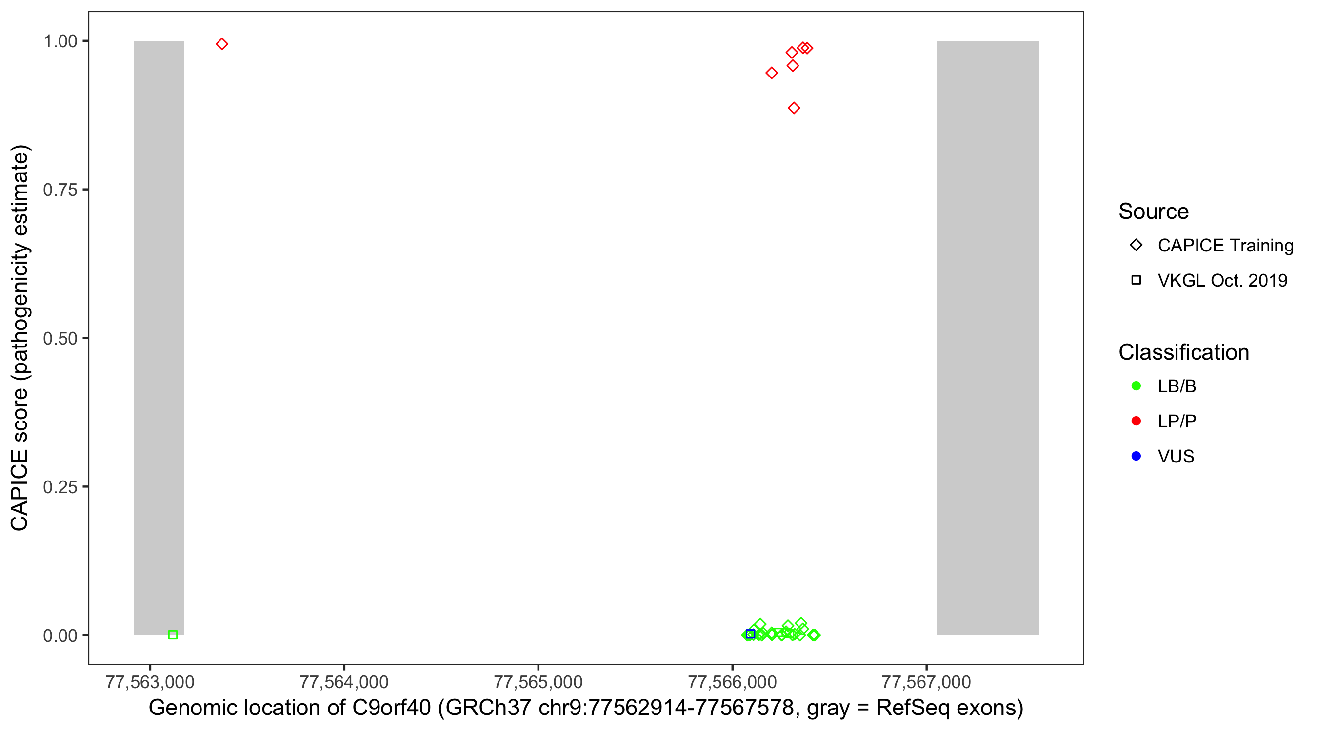 Shown are CAPICE train/test variants plus VKGL Oct 2019.